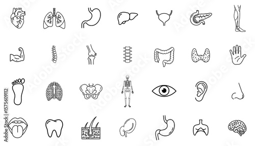 A grid of line art icons depicting various human organs and body parts.
