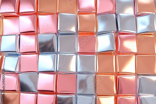 A grid of soft, metallic squares in shades of rose gold, silver, and copper.