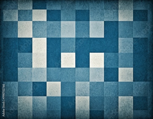 a grid of square tiles in shades of blue and white, arranged in a pattern that resembles a mosaic The tiles are slightly overlapping, creating a sense of depth and texture