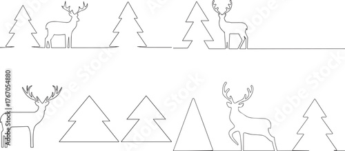 A group of Deer with antlers tree one continuous line art, Vector illustration, One line art, Line art graphic style
