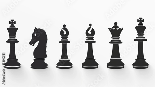 A group of black chess pieces sitting on a white background, ideal for use in business or financial settings