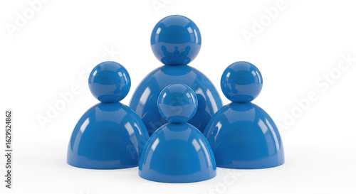 A Group of Blue Figures Standing Together on a White Background Representing Family Unity and Teamwork with a Clean and Modern Aesthetic for Business and Social Concepts