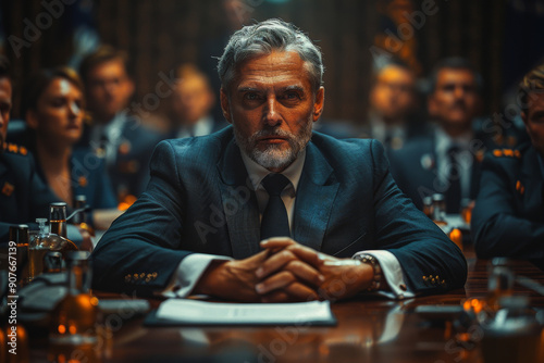 A group of diplomats engaged in a heated discussion at a conference table. Generative AI
