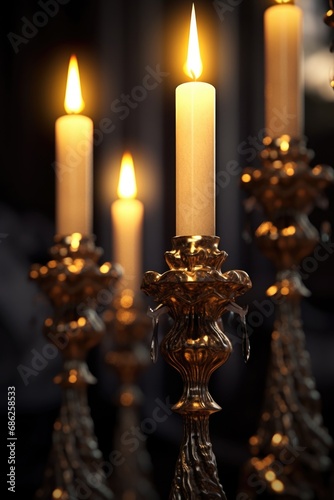 A group of lit candles sitting on top of a table. This image can be used to create a warm and cozy atmosphere or to symbolize relaxation and tranquility.