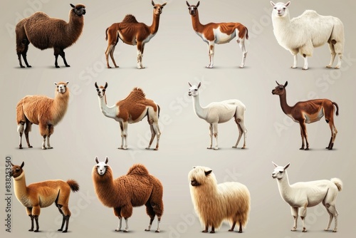 A group of llamas posing side by side, perhaps at an animal show or farm