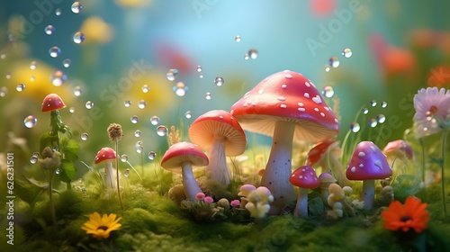 a group of mushrooms in grass