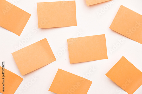 A group of orange post-it notes memo sticker papers note pads on the wall