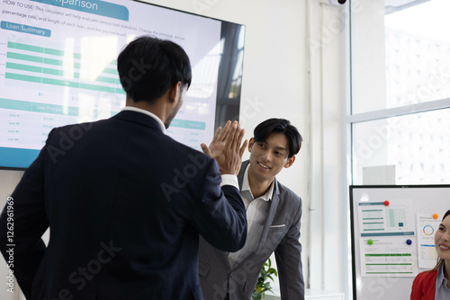 A group of people are sitting around a table with a model house in the middle. They are all smiling and seem to be enjoying themselves