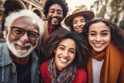 A group of people smiling and posing for a picture. Ideal for capturing joyful moments and group celebrations