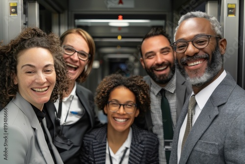 A group of professional individuals posing for a group photo in an office corridor, representing teamwork, unity, and professionalism within a corporate environment.