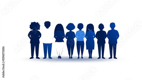 A group of silhouetted diverse figures stands in a row, embodying unity and collaboration, This image can be utilized for themes of teamwork, community