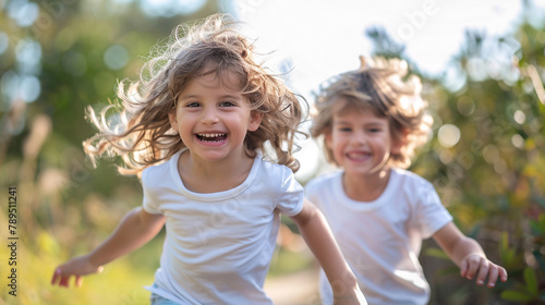 A group of small children in blurred background and one cute little girl smiling and looking at the camera