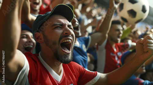 a group of spectators and soccer supporters shouted in the stands of the stadium.