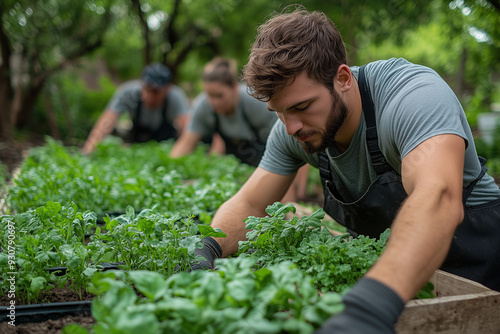 A group of volunteers helping to maintain a community garden, ensuring it remains a vibrant and productive space.