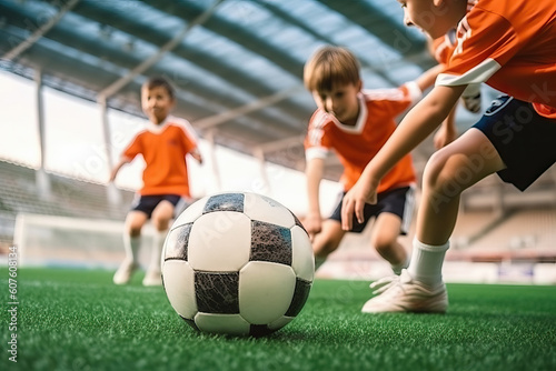 A group of young boys kicking a soccer ball created with Generative AI technology