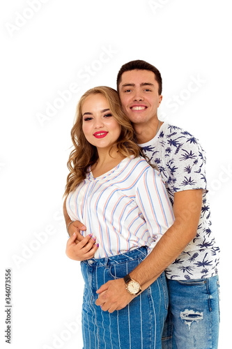 A guy embraces a beautiful juicy girl