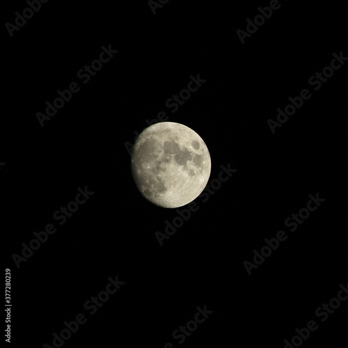 a half moon shining in black night