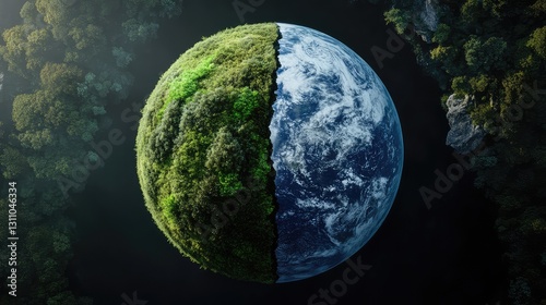 A half-green, half-dry Earth, illustrating the contrast between a sustainable and warming planet.