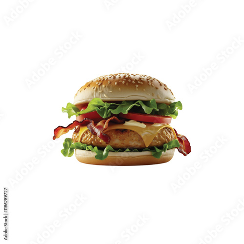 A hamburger with a cheeseburger on it and a green lettuce on the top