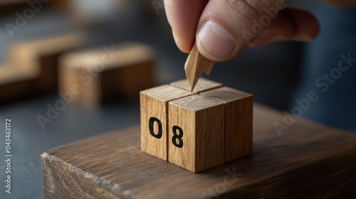 A hand adjusts a wooden calendar date display.