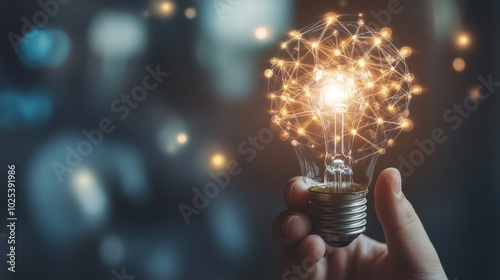 A Hand Holding a Lightbulb with a Network of Interconnected Glowing Points