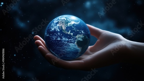 A Hand Holding the Earth Against a Starry Night Sky