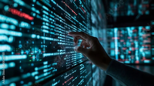 A Hand is Touching a HUD Display—a Depiction of Quantum Technology.