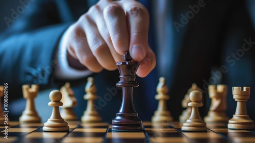 A Hand Moving a Black Chess King on a Board