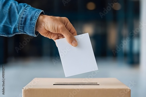 A hand placing a ballot into a box, symbolizing civic engagement and participation in the electoral process.