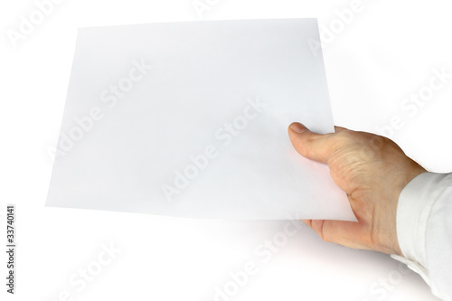 a hand showing white paper