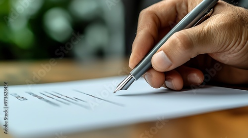 A hand signs a document with a pen, capturing a pivotal moment of agreement or formality.