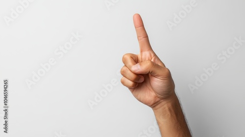 A hand with an extended index finger pointing upwards against a light neutral background, symbolizing direction, focus, and an upward journey or aspiration.