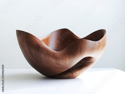 A hand-carved wooden bowl, isolated on a white surface, with smooth edges and no shadow.
