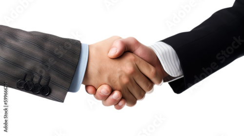 A handshake between two businessmen wearing suits isolated on a transparent background, Generative AI