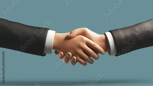 a handshake between two people. The people are wearing suits. The background is a solid color.
