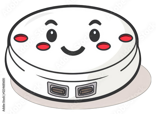 A happy cartoon smoke detector with two ports