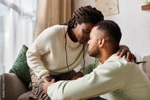 A happy couple enjoys tender moments together, embracing warmth and love this winter.