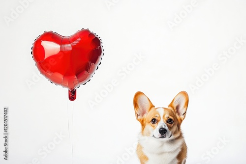 A happy dog sitting next to a heart shaped balloon, perfect for Valentine's Day or any romantic occasion