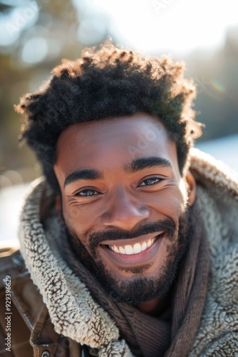 A happy guy with a beard and jacket on