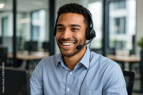 A Happy Young Male Customer Support Executive Working in an Office