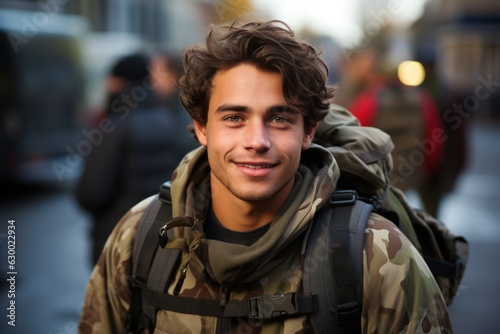 A happy young soldier returning home from the army