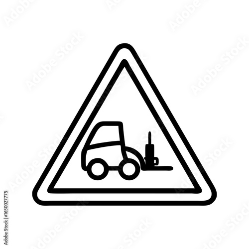 A hazard sign warning of forklifts in the area. A black and white image featuring a triangular shape