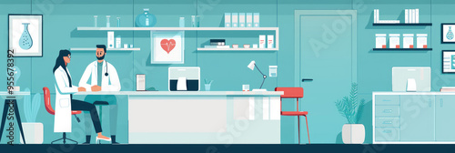 A healthcare professional interacts with a patient in a well-organized medical office that promotes comfort and trust
