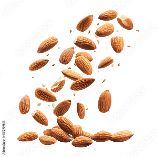 A healthy, brown heap of raw almonds and nuts, an isolated organic food on transparent background
