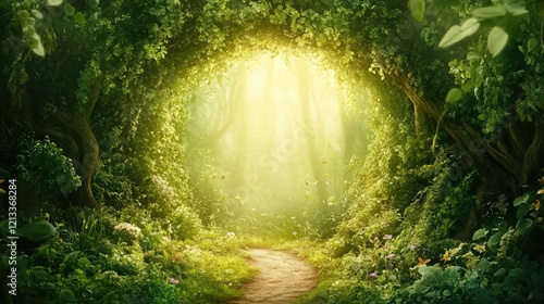A healthy forest with sunlight streaming through the trees, creating a peaceful atmosphere and space for text above
