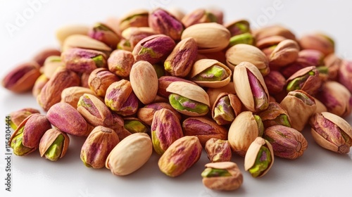 A heap of pistachios on a clean surface, ideal for commercial or editorial use