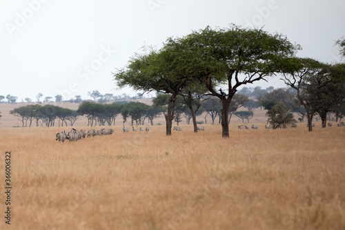 A heard of Zebra (Equus quagga) in the later afternoon. Tanzania.