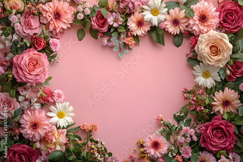 A heart shape formed by various flowers creates a vibrant decoration for a celebration