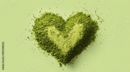 a heart shaped pattern made from what appears to be dried mint leaves, centered against a green background with a gradient effect