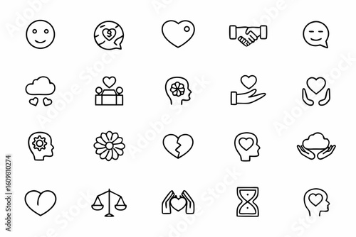 A heartfelt and uplifting icon set supporting emotional care, therapy, and inner peace. Perfect for counseling services, wellness apps, mental health campaigns, and daily planners